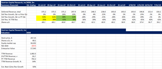 If you're not familiar with MongoDB MDB 0.00%↑ this is a database software business which is gradually eating away at Oracle, IBM, and Microsoft's legacy database market share. The products are lightweight and fast in nature, initially deployed in high volume but low cost internet application setups, now found migrating towards more core enterprise functions.